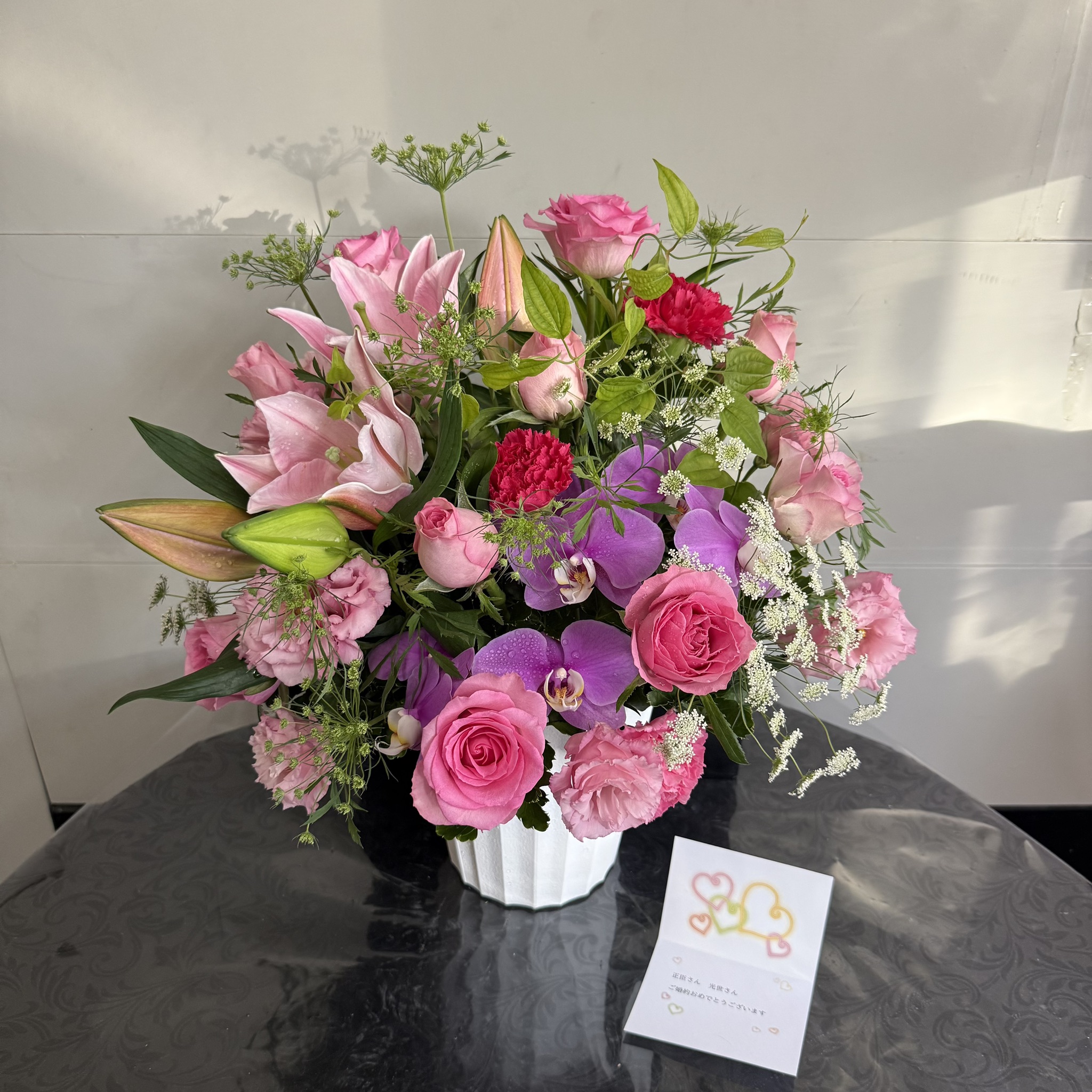実際に使用する花材、資材、花器、形状、高さは異なる場合がございます。